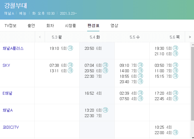 다시 보기의 경우 로그인이 필요하며 별도의 유료 구독료를 지불하여 시청할 수 있습니다. 무료로 시청하고 싶다면 강철부대 재방송 일정을 확인한 후 채널A에서 무료로 시청할 수 있습니다. 이를 확안히가 위해서는 하단의 편성 시간표를 확인하시기 바랍니다.