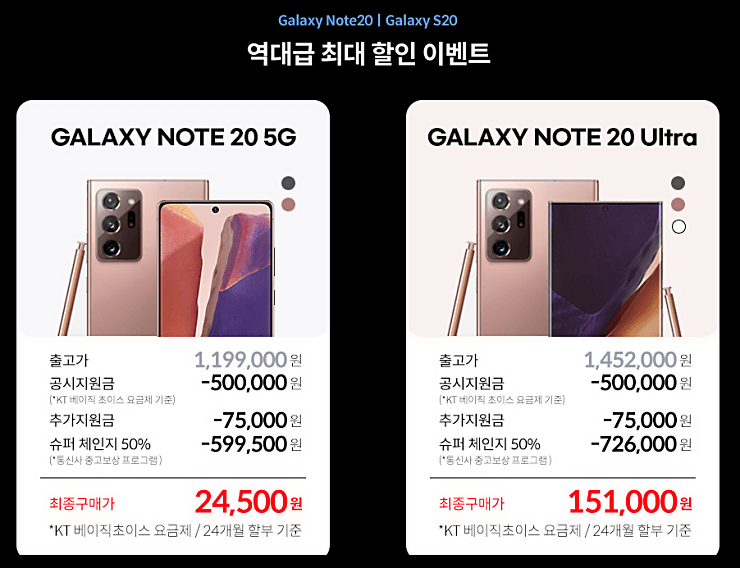 사실 최신폰 출시를 앞둔 지금이 핸드폰을 가장 저럼하게 구매할 수 있는 시기이다. 갤럭시S21 출시를 앞두고 노트20/노트20 울트라 한정 재고방출 이벤트, 97% 할인 등으로 최신폰을 구매할 수 있기 때문이다. 더 자세한 내용은 아래를 살펴보도록 하자.