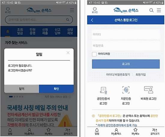 ▼ 로그인 > 공인인증서