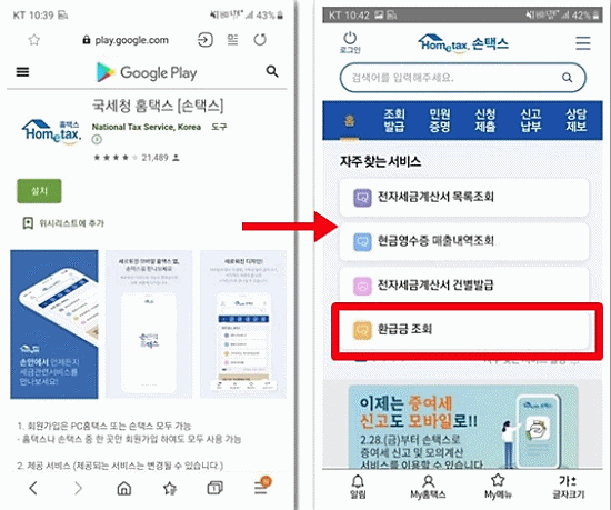 ▼ 모바일 앱을 실행 > 환급금 조회