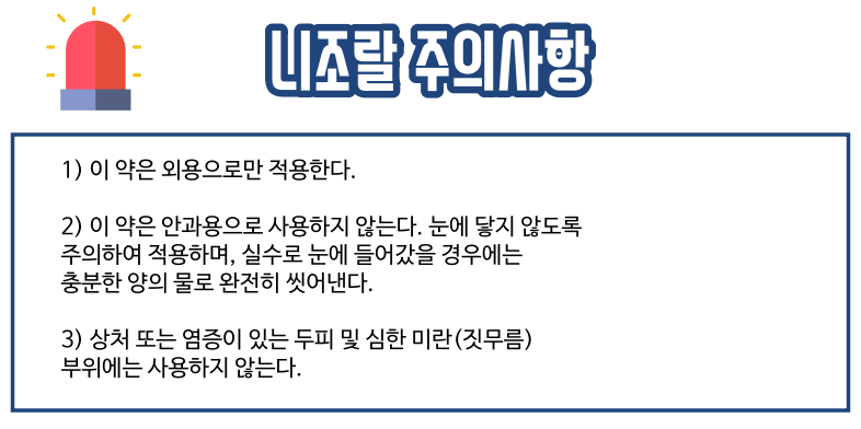 오늘은 니조랄의 효능부터 부작용까지 알아봤습니다. 사용 전이나 사용하시려는 분은 주의사항 및 부작용을 확인하시고 만약 사용시 이상 증상이 지속된다면 사용을 즉각 멈추시길 바랍니다. 감사합니다.