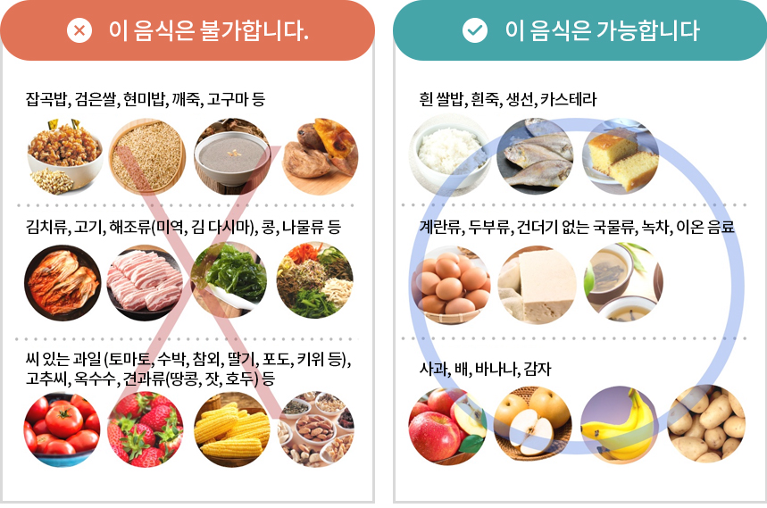 병원에서는 대장내시경 후 음식은 부드럽고 잔류량이 적은 음식을 먹으라고 권장합니다. 소화하기 쉬우며 저섬유질 식품으로 대장에 무리가지 않은 음식들입니다.
