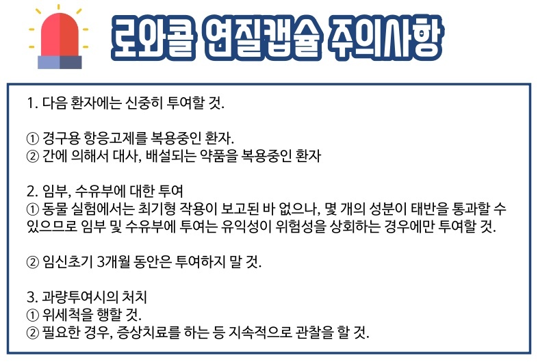 이상으로 로와콜 연질캡슐에 대해 알아봤습니다. 복용 시 처방된 복용량을 지키시기 바라며 만약 과량 투여 시에는 위세척 등으로 처치해야 합니다. 부작용과 주의사항을 다시 한번 확인 후 안전하게 복용하시기 바랍니가. 감사합니다.