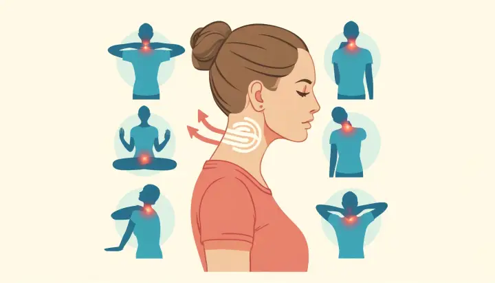 다양한 원인들로 목에 담이 걸릴 수 있습니다: