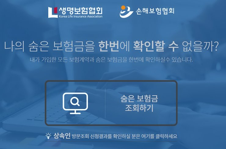 나의 숨은 보험금을 한번에 확인할 수 없을까? 내가 가입한 모든 보험계약과 숨은 보험금을 한번에 확인하실수 있습니다. 숨은 보험금조회하기 상속인 방문조회 신청결과를 확인하실 분은 여기