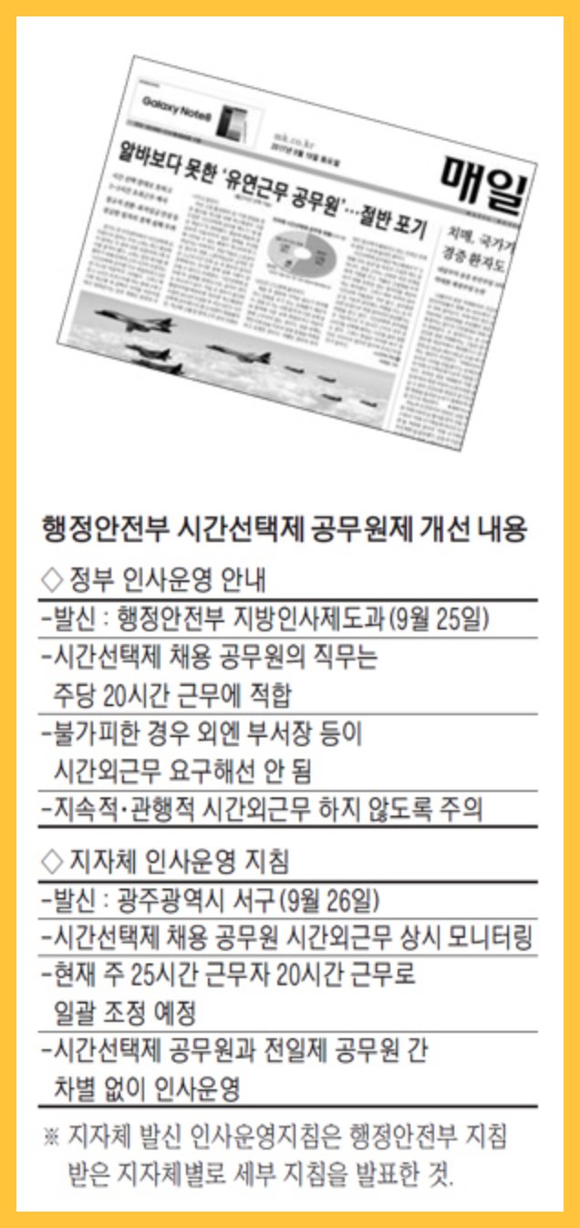 쉽게 말해 시간제 공무원은 파트타임과 같이 일반 공무원보다 짧게 그리고 근무 시간을 유동적으로 할 수 있습니다.