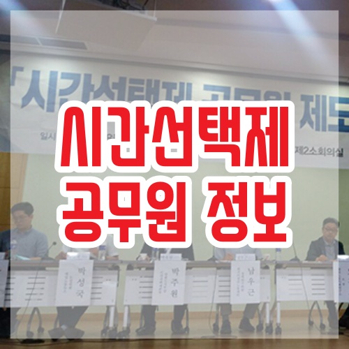 시간 선택제 공무원이 궁금해졌습니다. 9급, 7급 공무원에 대한 정보는 많지만 시간 선택제 공무원에 대한 정보는 많이 없는 것 같습니다. 그래서 오늘 찾아본 정보를 이곳에 정리하려고 합니다.