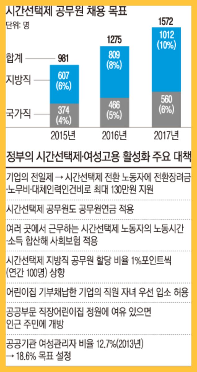예를 들면 일과 육아를 병행해야 하는 경우, 가족 중 누군가를 간호해야 하는 경우 혹은 건강상의 이유로 종일 근무가 불가능한 경우 등 경력을 유지하면서 양질의 근무 환경을 제공하는 것을 목적으로 도입됐습니다. 이런 장점으로 매년 시간선택제 공무원의 인기가 많아지고 있습니다.