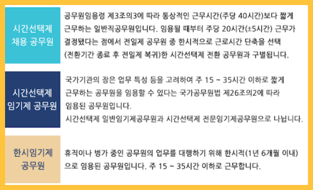 시간 선택제 공무원은 크게 세 가지로 분류됩니다.