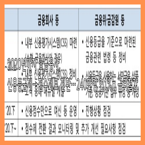 2020년 1월부터 주요 시중은행에서 신용점수제 평가(評價)가 도입돼 올해 안에 점수제 전환을 완료하고 내년부터는 모든 금융권의 개인 신용평가(評價)제도가 등급제에서 점수제로 전면 개편됩니다. 개편안의 핵심은 신용등급(1~10등급) 대신 신용점수(1~1000점)를 매기는 것으로 기존 등급제가 종합평가(評價) 방식이었다면 점수 체계를 1점 단위로 환산해 보다 정밀하고 세분화된 평가(評價)가 가능하다는 것입니다.
