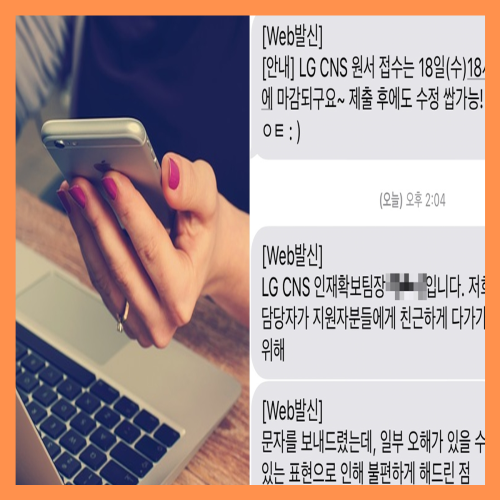 CNS 인사 담당자는 원서 접수 마감일을 안내하면서 "LGCNS 지원서 접수는 18일(수) 18시에 마감됩니다. 제출 후 수정도 쌉가능! ㅎㅇㅌ :)" 라는 문자를 보냈습니다. 이는 대기업에서 공개적으로 사용이 부적절한 지적이 나왔고 LGCNS의 공식 사과가 있었습니다.
