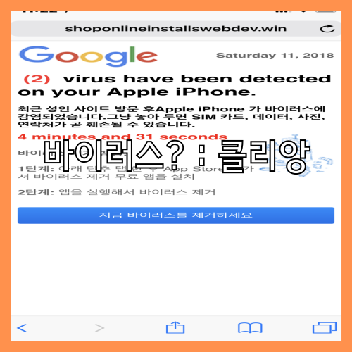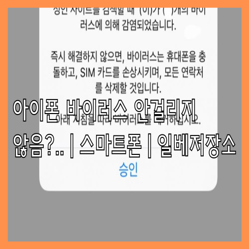 바이러스 검사를 위해서는 아이폰에 설치된 앱과 파일을 모두 열어야 하지만 파일 열람에 제약이 많아서 바이러스 검사가 사실상 어렵습니다. 아이폰에서 악성 프로그램이 실행되거나 위협에 노출되면 경고 메시지가 먼저 나타납니다.