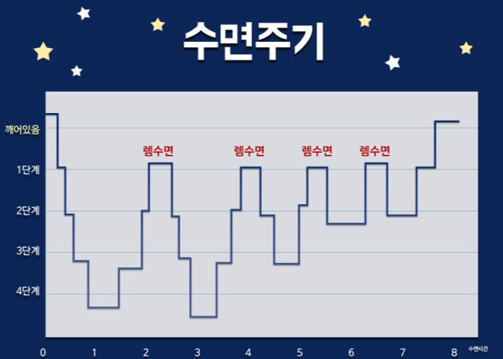 수면은 2가지 수면으로 나뉩니다. 렘수면과 깊은 수면입니다. 렘수면은 깨어있는 것과 가까운 얕은 수면이고 깊은 수면은 완벽한 수면입니다.