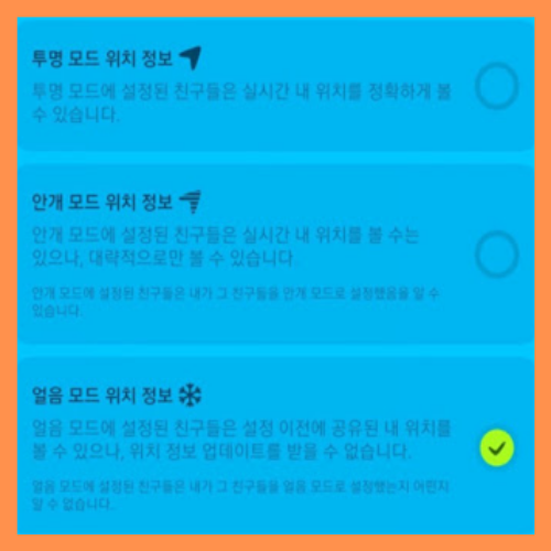 유령 모드 설정 변경이 즉시 적용되기 위해서는 온라인 연결 (WiFi 또는 무선 네트워크 연결)이 필요하며 오프라인에서 설정된 변경 사항은 온라인으로 연결되는 순간 업데이트됩니다. 유령 모드는 실시간 위치 정보의 노출 수준에 따라 안개 모드 또는 얼음 모드를 선택할 수 있으며 유령 모드를 설정할 때 친구에게 알림을 보내지 않습니다.