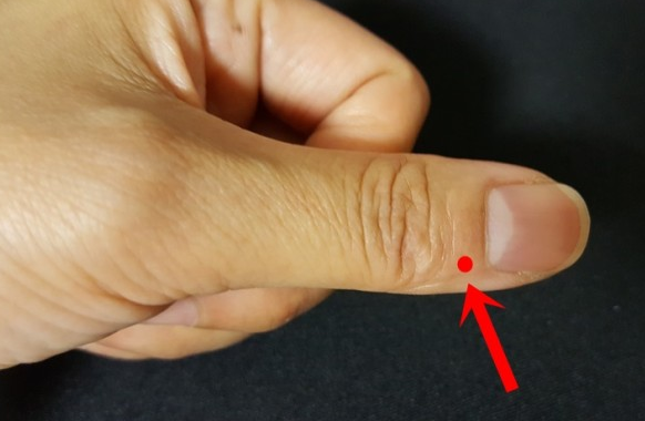 손 따는 위치는 사람마다 다릅니다. 위와 같이 엄지손톱 윗부분을 따는 살마도 있고 가운데를 따는 분도 있습니다. 또는 위 사진 속에 표시된 부분과 그 안쪽 부분 양쪽을 따기도 합니다.