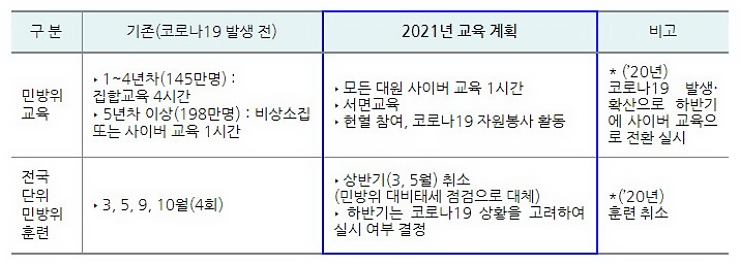▼ 2021년 민방위 교육 및 훈련 변경 계획