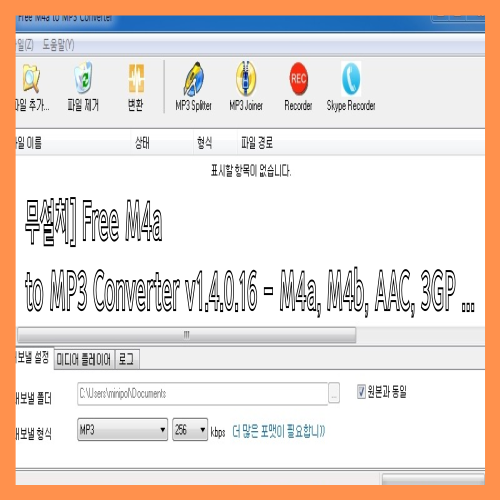 설치(峙) 시 언어는 영어 (영어)를 선택하고, Free M4a to MP3 컨버터 설치(峙)가 완료되면 프로그램을 실행합니다 [Add] 파일 버튼을 클릭하여 m4a 확장자 파일을 선택합니다. m4a 확장자 파일을 추가하면 변경할 파일 확장자와 kbps를 선택합니다. 변경할 파일 확장자는 mp3를 선택하고 다른 확장자를 선택하지도 않습니다.