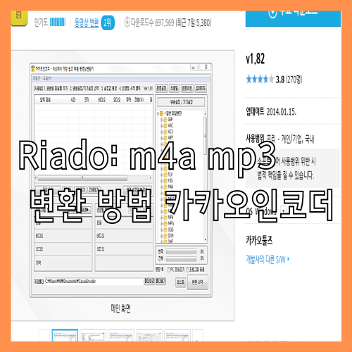 m4a mp3 변환은 별도의 프로그램을 설치(峙) 해야 합니다. 프로그램을 설치(峙)하면 파일 변환을 간단한 조작으로도 허용합니다. 과거 m4 amp3 변환에 카카오 인코더, 다음 팟 인코더를 많이 사용했지만 현재 서비스가 중단되고 있으며 온라인으로 배포되는 것은 소스가 불분명하기 때문에 사용하지 않습니다. M4A 파일과 MP3 파일의 가장 큰 차이점은 압축 여부에 있습니다.