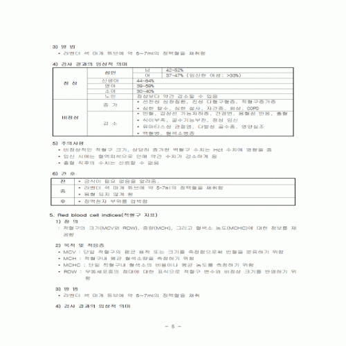 일반 혈액 검사는 혈액을 구성하는 다양한 혈액의 수와 특성을 평가하는 검사로 전반적인 건강 상태를 나타내며 질병의 진단 또는 경과를 추적하는 기본 데이터를 제공합니다. MCV의 정상 범위는 평균 80.0 ~ 98.0 3이며 성인과 어린이는 일반적으로 80 ~ 95 3 사이를 정상 범위로 간주하며 신생아의 MCV 정상 범위는 96 ~ 108 3 사이입니다.