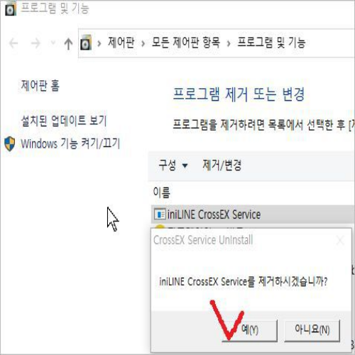 [창 ++] rky * 명령 입력 (cotrol) * 체크 컨트롤 보드에서 프로그램 삭제 범주를 클릭합니다. 화면에 \"프로그램 삭제 또는 변경\"페이지가 표시되면 목록에서 이닐린 교차 섹스 서비스 프로그램을 찾을 수 있습니다.