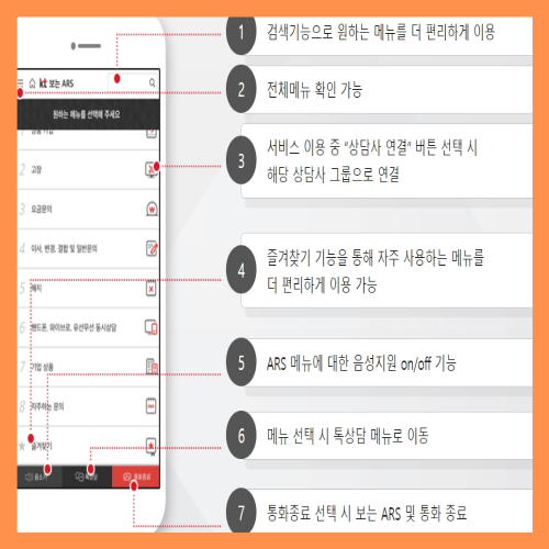 분실 접수와 일시 정지, 통화 품질 상담은 24시간 언제든지 가능합니다. ARS 고객 센터는 음성 기반 ARS 서비스를 통해 별도의 스마트폰 웹 화면을보고 듣고 쉽게 이용할 수 있는 고객 센터입니다.